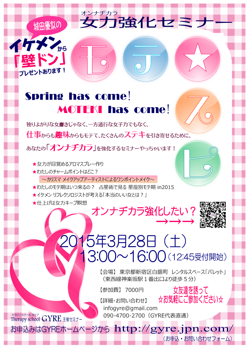 明日の土曜日開催のセミナー「モテ☆スピ」に1席キャンセルが出ました