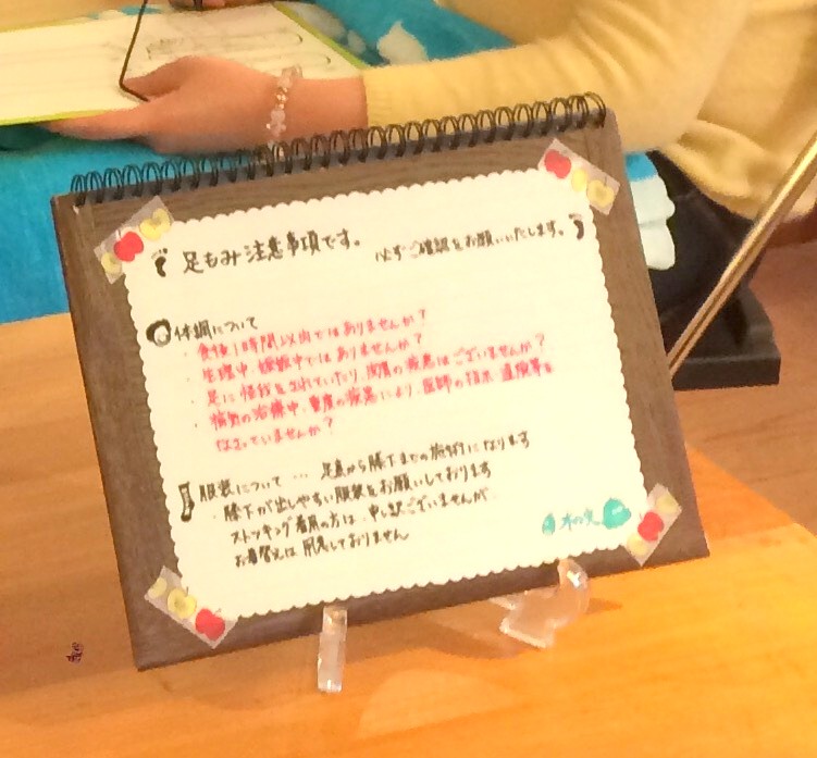 ご本人の代わりに直筆の「足もみ注意事項」画像を載せますね![]()